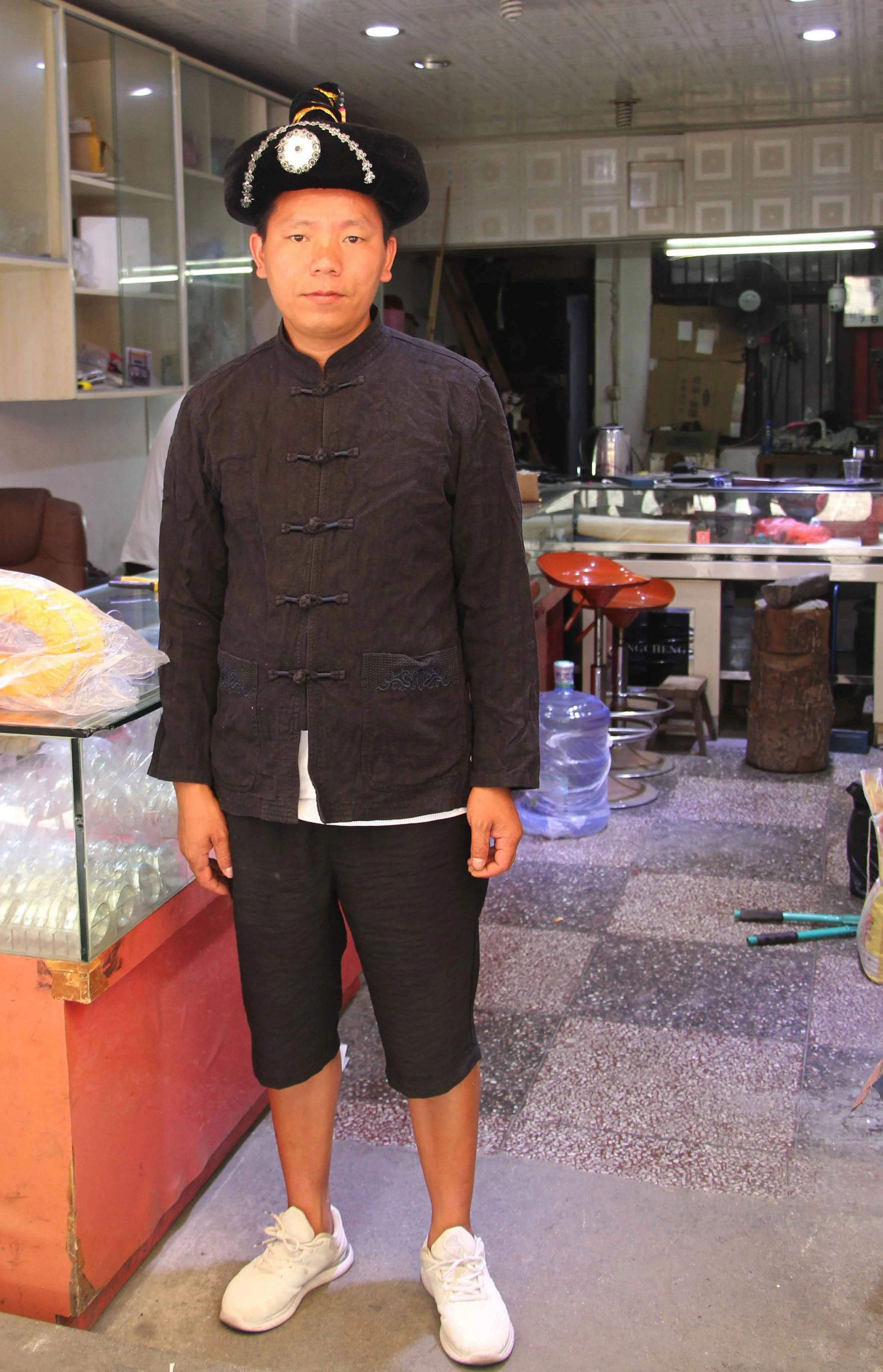 “Miao minority people are fond of silver wares and both men and women love to adorn themselves with silver accessories,” says master silversmith Huang Changping. As early as the Ming Dynasty, Miao people have been known for their silver adornments and the tradition continues with the creation of jewelry, belts, pipes, housewares, and even hats made of silver. In Miao society, young men learn silversmithing around 15 years of age and those who master the craft are greatly respected and admired. Huang learned the art of silversmithing from his father, Huang Guangwen, an award-winning craftsman who has now retired from the business.