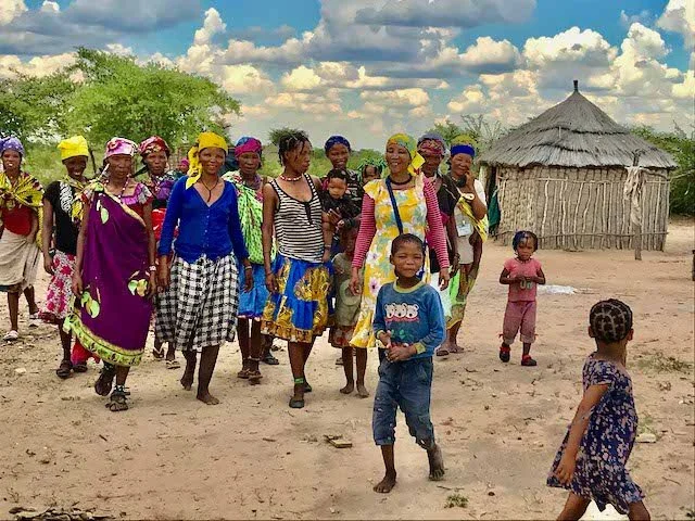 Omba’s artisans produce a type of jewelry that will almost certainly be unfamiliar to most Western audiences: necklaces, bracelets, earrings, and more using beads made of ostrich eggshells. Ostrich eggshell beads are a 72,000-year-old tradition still made the same way today. The shards of hatched eggshells “are chipped into small round shapes. Holes are then drilled into the center of the shape using traditional techniques as well as more innovative equipment. The sharp end of a stick is placed in the middle of the bead, whilst the stick is rubbed between the palms of two hands - causing a rolling motion that allows the pointed edge to drill a hole into the ostrich eggshell bead. More recently some San are using solar-powered drills using old car parts, this is the invention of an elderly Ju/'hoan man. The ostrich eggshell beads are heated to get different shades from light brown to black.”